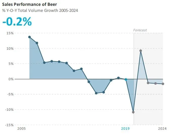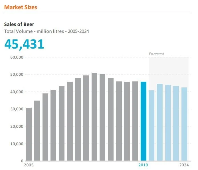 Beer sales stagnate at 45.4 billion litres in total volume terms in 2019
