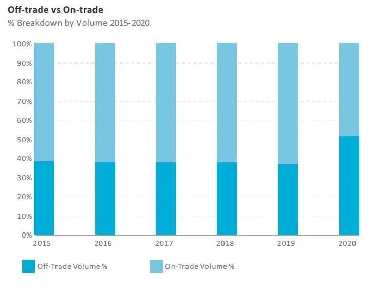 Despite strong growth in the off-trade channel, on-trade sales are severely impacted by the closure of on-trade establishments, the dramatic fall of tourism and decline in disposable income in 2020 due to COVID-19, driving total volume sales down