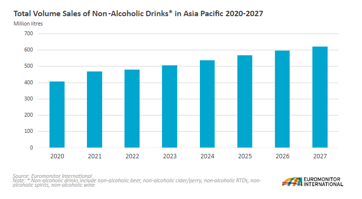 In response to health concerns, non-alcoholic products with functionality are popular. For instance, in Japan, the largest non-alcoholic drinks country in Asia Pacific accounting for 71% of the total volume sales in 2022, there are various products with functional claims, especially in non-alcoholic beer.